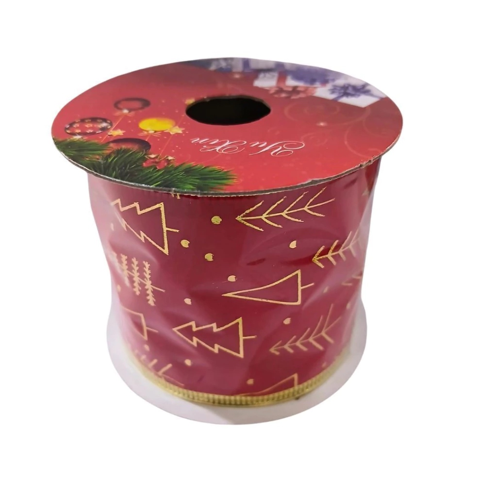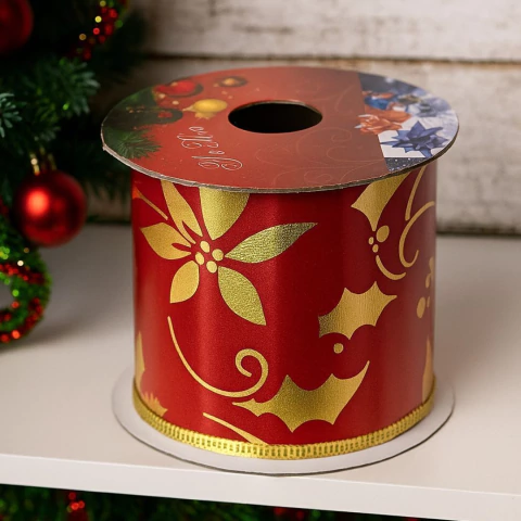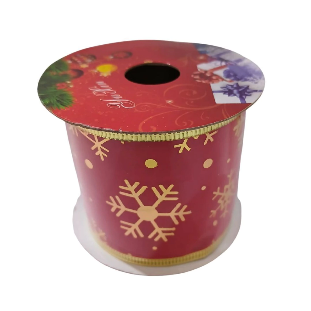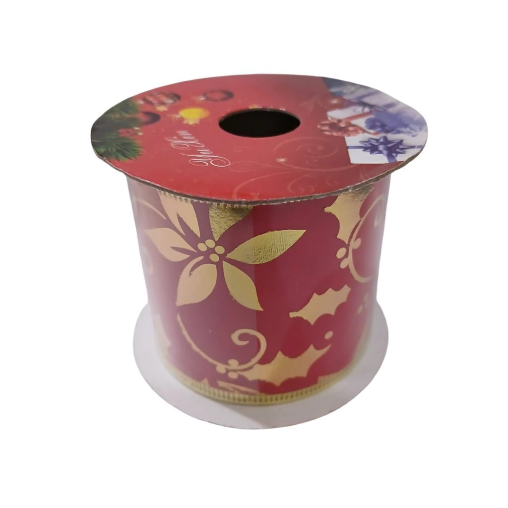Cinta navideña 6 cm roja con detalles dorados - Art 12753
